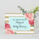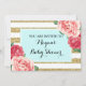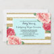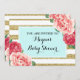 Pink Flowers Aqua Gold Stripes Baby Shower Invitation