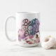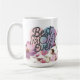 Start her mornings with a touch of floral elegance. Our modern mugs for Mother's Day feature a background of pink flowers and the phrase Best Mum Ever. These mugs are a trendy and heartfelt gift that she'll cherish with every sip, wishing her a Happy Mother's Day.