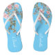 Pink Flowers Bright Blue Wedding Bride Flip Flops