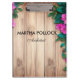 Pink flowers brown wood clipboard