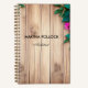 Pink flowers brown wood notebook