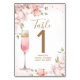Pink Flowers Brunch & Bubbly Bridal Shower Table Number