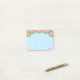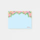 Beautiful watercolor pink flowers and calligraphy on light blue Post-it Notes.