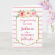 Congratulations on your graduation card for goddaughter with beautiful pink watercolor flowers, pink and white stripes pattern and sentimental verse.