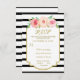 Pink Flowers Gold Black White Stripes Wedding RSVP