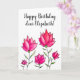 Pink flowers personalised birthday card with a beautiful ink and watercolor illustration of abstract flowers and the customisable text "Happy Birthday, dear Elizabeth".