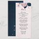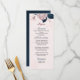 pink flowers navy leaves wedding menu