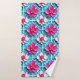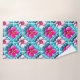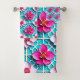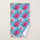 Pink Flowers on a Geometric Blue Background Bath Towel Set