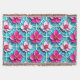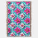 Pink Flowers on a Geometric Blue Background Throw Blanket