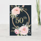 Pink Flowers on Black 50th Wedding Anniversary Card