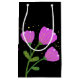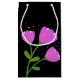 Features a simple pink hand-drawn flower design with gold foil detailing, on a black background.