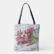 pink flowers on music tote bag