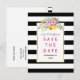Pink flowers & stripes wedding Save the Date Announcement Postcard