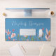 Pink Flowers Watercolor Stylish Script Name Blue Desk Mat