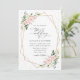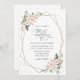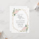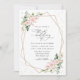 Invite friends and family in style and set the tone for your special day with this charming wedding invitation. Design features pink and white watercolor flowers, greenery, gold confetti and gold frame on white background.