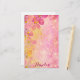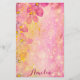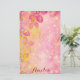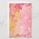Romantic floral personalised stationery paper design featuring stylised pink flowers, bokeh lights, sparkles and yellow paint splatters. The text is fully customisable.