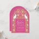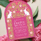 Hop into Easter with a brunch to remember! This invite features a charming arch-shaped frame filled with florals and playful white rabbits against a pink background. Perfect for a festive gathering! Personalize it to meet your needs.