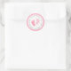 Circular Pink Polka Dots Baby Shower Return Address Label with cute foot print image.