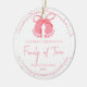 Celebrate your first Christmas as a family of three with this charming ornament, featuring a festive winter design. The soft pink hues and delicate footprints create a heartwarming keepsake that captures this special moment. This ornament includes space for personalisation to make it uniquely yours, allowing you to add names and the year for a personal touch. Perfect for hanging on your tree or gifting to loved ones, it's a beautiful reminder of new beginnings. Order today to add a festive touch