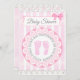 Daisy Themed Girl's Baby Shower Invitation pink white lace and small footprints.