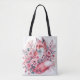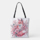 Tote bag features watercolor artwork of a pink fox among a variety of soft pink flowers.