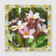 Pictured is a pretty pink Frangipani tree with a yellow Frangipani flower border