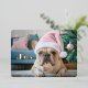 Pink French Bulldog Real Metallic Foil Christmas Holiday Greeting Card featuring a frenchie looking especially festive in a pink santa claus hat
