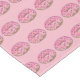 Tablecloth print features an original marker illustration of a row of delicious doughnuts with sprinkles and pink frosting.