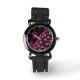 PINK FUCHSIA BLACK ABSTRACT DECO MONOGRAM WATCH