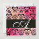 PINK FUCHSIA RED BLACK DAMASK MONOGRAM , white Invitation