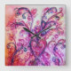 PINK FUCHSIA WHIMSICAL FLOURISHES WITH HEART SQUARE WALL CLOCK