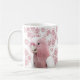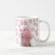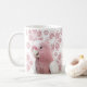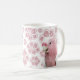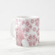 The background of the mug is an abstract pink flower pattern, which perfectly complements the bird's colour and adds to the mug's overall aesthetic appeal.