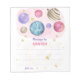 WATERCOLOR Magical galaxy outer space themed birthday invitation. Planets and stars in pink, purple, gold colorway.