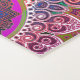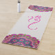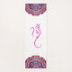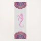 Indian inspired yoga mat done in white, with a hot pink decorative Ganesha symbol, in the middle. Graphics of colourful pink mandalas decorate both ends of the mat. Same design is featured on both the front and backside of the mat.