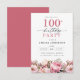 Pink Garden Floral Calligraphy 100th Birthday Invitation
