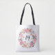 Pink Garden Flowers Wreath Monogram Tote Bag