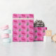 The pink garden beauty in the pattern on this Wrapping Paper is an original photograph by MaeFlowers of a beautiful pink garden rose. It's a closeup view, showing the flower open wide, with all of its petals in ruffled layers. The intense pink colour becomes deeper in the centre of this lush bloom. In the corners of the photo, bits of the flower's surrounding green leaves can be seen. This is a design for lovers of the colour pink.