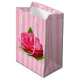 Medium glossy gift bag with an image of pink on pink stripes and a rare and gorgeous pink gardenia with lush green leaves on the front. See the entire Mother's Day Gift Bag collection in the PARTY FAVORS section.
