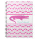It's easy to personalise this colourful chevron stripe and pink polka dotted gator notebook with a name before ordering! Features pink, grey, and white chevron stripes with a pink and blue polka dotted alligator and an area you can easily customise with a name!