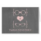 Quirky and chic Geeky Glasses Chalkboard Table Number Card in light pink featuring a cute heart flanked by two pairs of nerdy eyeglasses, a manly pair and a girly pair representing the groom and bride on a chalkboard look background. This offbeat table card is perfect for your geek wedding! Easy to customise, simply add the appropriate table number(s) in the text field provided. Click on the "Customise It" button to find additional personalisation options.