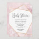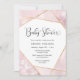 Invite your guests to your baby shower with beautiful pink marble geometric Baby Shower invitation with gold accents and a faux shiny pink background.