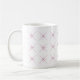 This elegant ceramic mug features a repeating pink starburst pattern arranged in a clean diamond grid, creating a modern yet playful aesthetic. The symmetrical design adds a touch of sophistication while keeping the look fresh and minimalistic. Perfect for brightening your morning coffee or tea ritual, this stylish mug blends contemporary design with everyday functionality, making it a standout piece for home or office