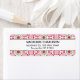 An abstract pink and green geometric watercolor painting forms the background for this simple but striking design.