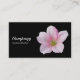A business card with a Pink Geranium photo motif. Business name etc on the front with other details on the reverse with the same motif and style.
