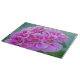 A beautiful photograph of pink geraniums printed on a glass chopping board.