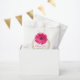 Personalised pink gerber daisy and green floral damask candy buffet or dessert buffet wedding favour bags. Pink script font for the word thank you. A great choice for a candy or dessert buffet! Pink gerbera daisy is a great flower choice for your wedding. Your guests can fill them up with candy. Or a good choice for a daisy themed wedding in the spring or summer.