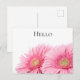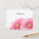 A hello postcard with a photograph of a pair of pink gerbera daisies. Elegant & stylish.