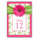 Pink Gerbera Daisy Green Damask Table Number Card