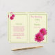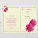 The text on this pink gerbera daisy green border wedding program is fully customisable. It is intended to be folded down the middle when you receive it. To change the text, use the personalise option. For more extensive text changes, such as changes to the font, font colour, font size, background colour, or text layout, use the customise option. Also, once your text is finalised, if you need to move it around a bit, you can do that using the customise option. This pink gerbera daisy special occasion program is currently customised as a wedding program, but it would work well as a program for a birthday celebration (sweet 16), wedding shower, or possibly high school graduation celebration as well. Really, this would even make a really nice church bulletin with changes to the text. Let your imagination lead you. It is recommended this is only purchased as a standard 80lb matte finish. The 100lb paper option is difficult to fold and therefore not recommended.