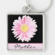 This pretty pink gerbera daisy keychain is customisable, so you can change the word "mother" to anything you want, and you can change the colour, size, and type of font used for the text too.